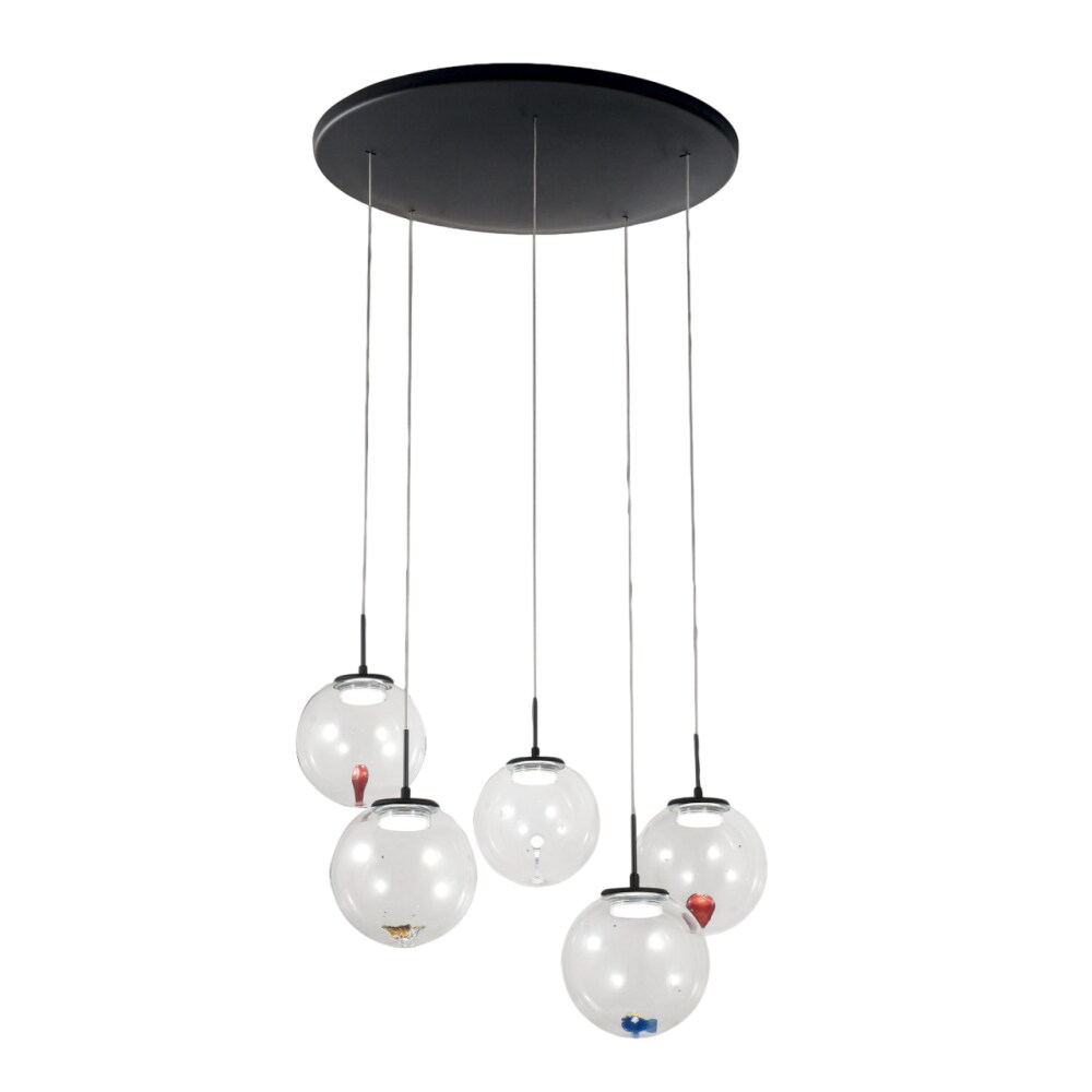 Ariel - 5-flammige runde Pendelleuchte mit Fabas Luce-Formen - 35 W dimmbare LED - Transparente runde Deckenrosette d. 50 cm