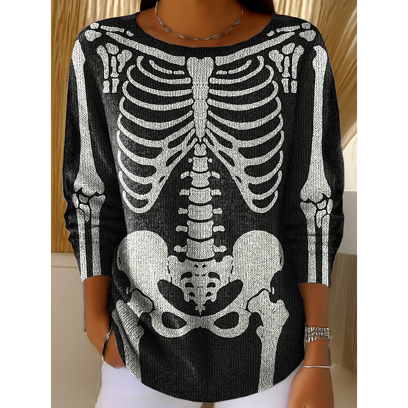 Women's Sweater Cute Streetwear Casual Graphic Skeleton Crew Neck Patchwork Knitted Long Sleeve Regular Tops Knit Black Red Fall Winter