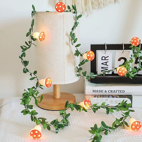 Ghirlanda di luci a LED a forma di rosa e foglia verde, 6 m, 40 LED, a forma di fungo, alimentata a batteria, per Natale, casa, balcone, giardino, veranda, finestra, festa, decorazione per matrimoni