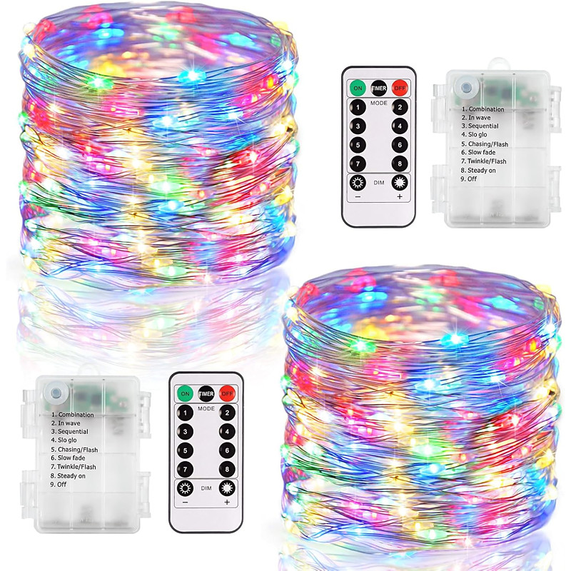 Halloween Christmas Waterproof Battery Box Light String 8 Function Remote Control Indoor and Outdoor Courtyard Garden Wedding Decoration Light 4M-30Leds/6.5M-50Leds/10M-100Leds