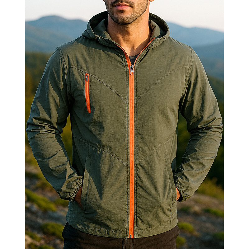 Men's Windbreaker Hiking Jacket Rain Coat Outdoor Waterproof Windproof Lightweight Hiking Outfits Hiking Clothes Spring Autumn / Fall Top Camping / Hiking / Caving Running Solid Color Black Army