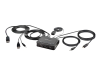StarTech.com 2-Port Hybrid USB-C DisplayPort Cable KVM Switch, 4K 60Hz, Compact KVM with 6ft/1.8m USB-A/DisplayPort/Audio & 4ft/1.2m USB-C Integrated Host Cables, Bus Powered - Remote Push Button/Hotkey Switching (C2-D46-UAC-CBL-KVM) - KVM / audio / USB switch - kompakt - 2 x KVM / audio / USB - 1 lokalbruger - desktop