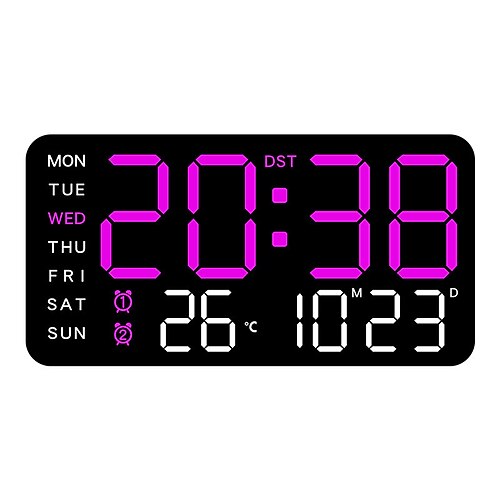 Orologio da parete digitale decorativo multifunzionale a LED, orologio da parete con ampio display, grande orologio digitale da parete con data, settimana, temperatura, umidità per soggiorno, camera