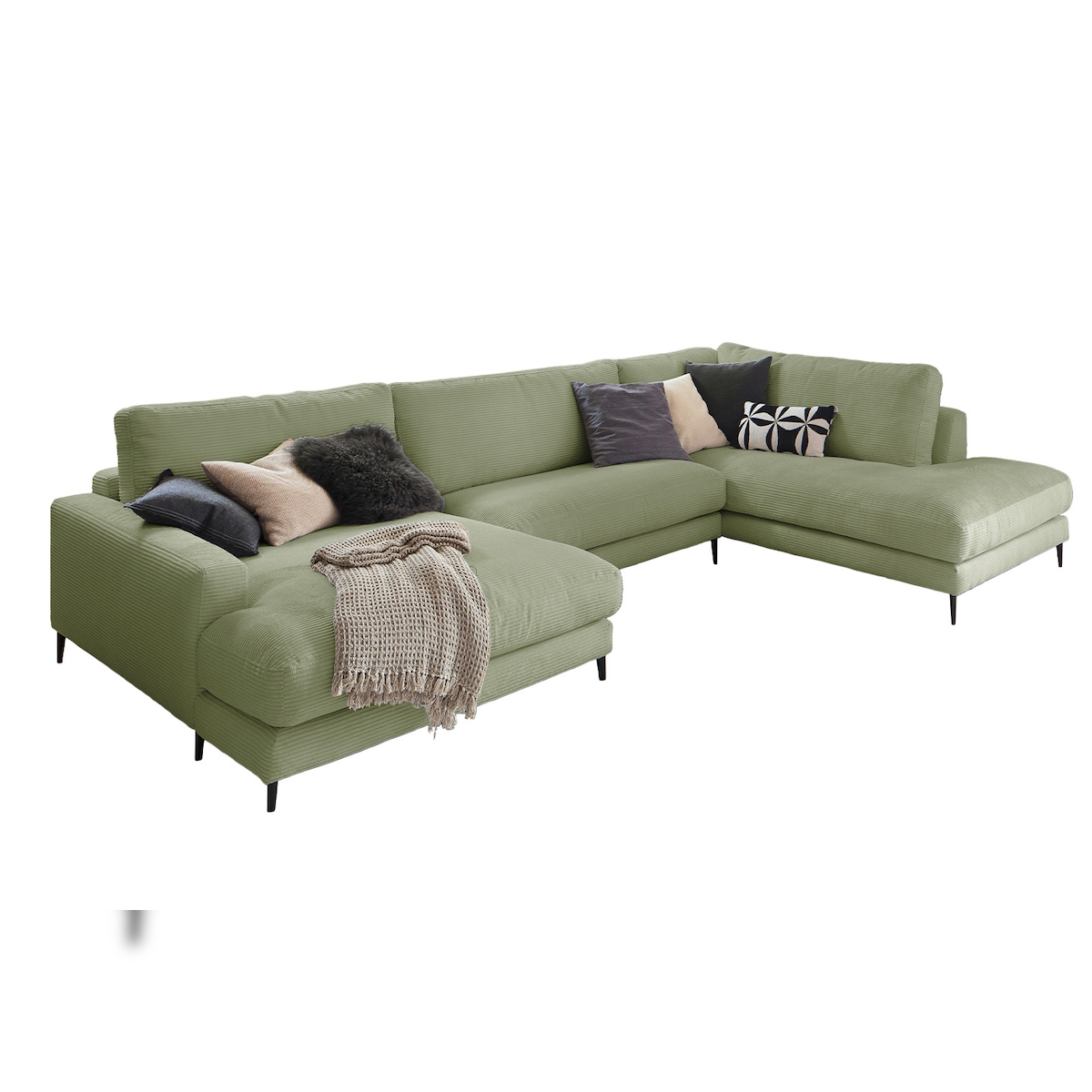 KAWOLA Ecksofa CARA Sofa Recamiere links Cord smaragd