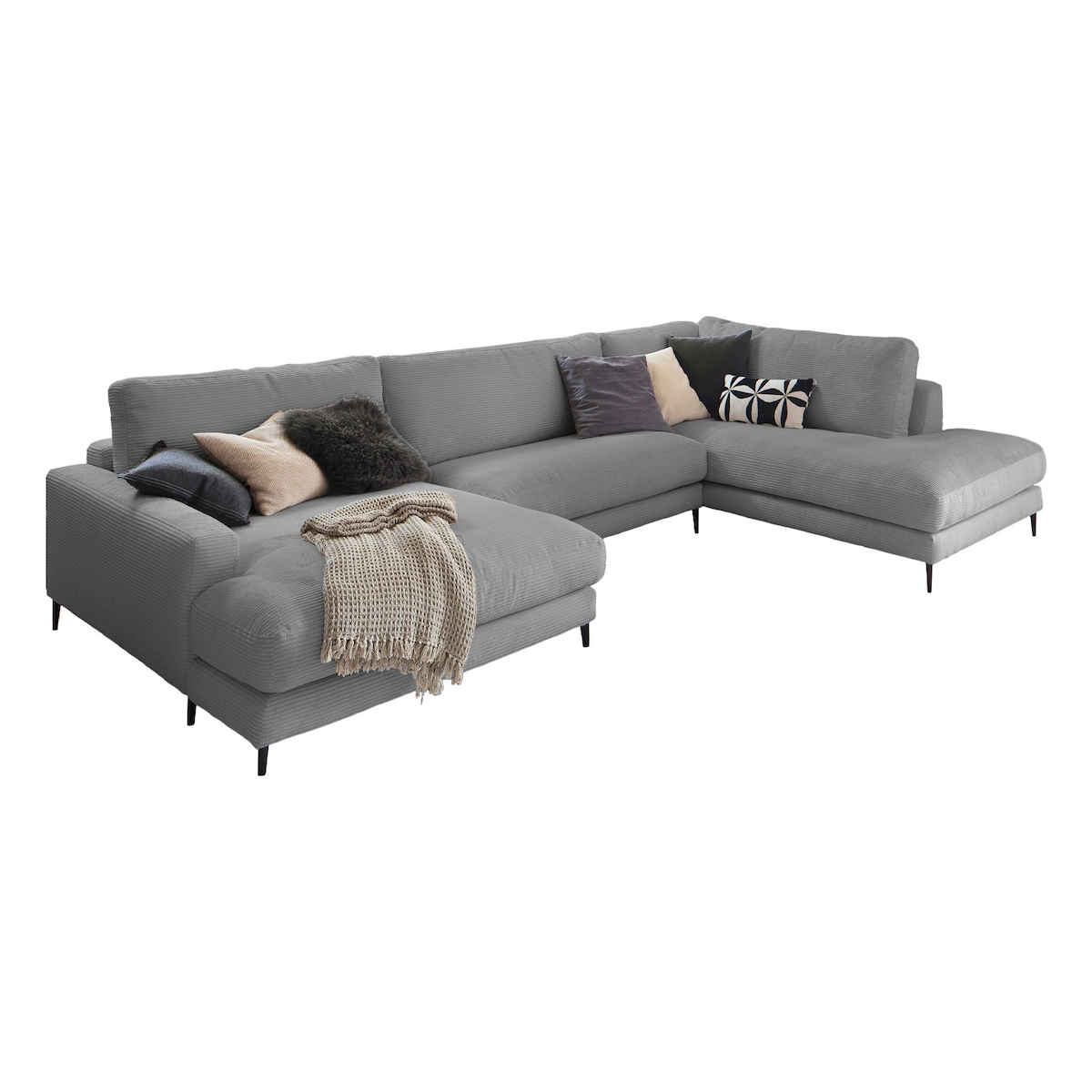 KAWOLA Sofa CARA Wohnlandschaft U-Form Cord grau Longchair links