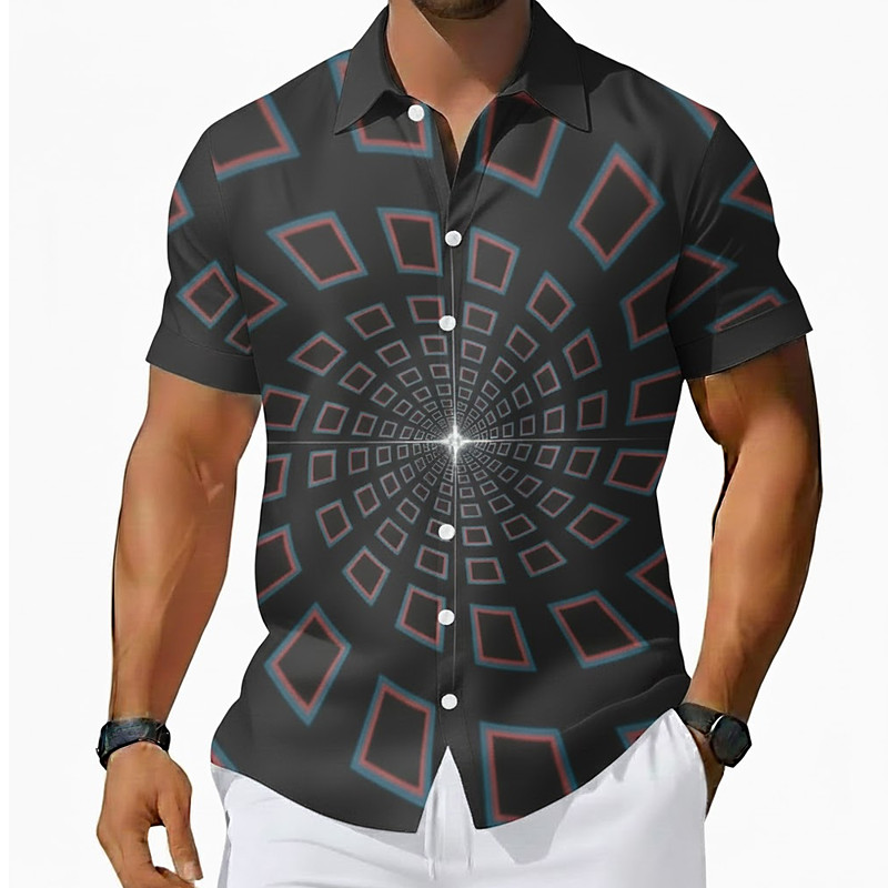 Men's Geometric Dazzle color 3D Vortex Shirt Button Up Shirt Short Sleeve Fashion Casual Daily Vacation Summer Spring Turndown 3D Print Collared Shirts Black Green Dark Blue Gray