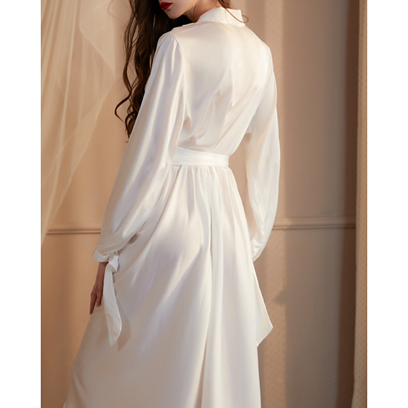 Women's Robe Casual Soft Satin Pure Color Lace up Daily Home Bed Long Sleeve V Neck Black White Champagne Pink Wine Summer Spring Regular Fit Loose Fit