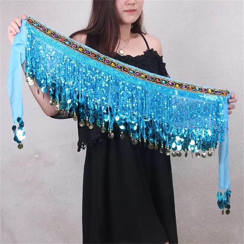 Carnival 2026Rio Carnival Samba Dancewear Belly Dance Skirt Sequin Tassel Skirt Wrap Sparkly Tinsel Fringe Skirts with Sequins and Coins Performance Costume Brazil Festival Performance Costume