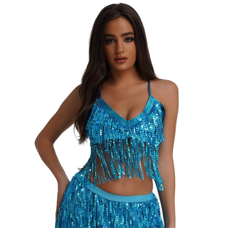 Mardi Gras Skirt Latin Dance Skirt Stage Ds Performance Outfit Female Sequin Fringed Shorts Bar Performance Brazil Festival Performance Costume