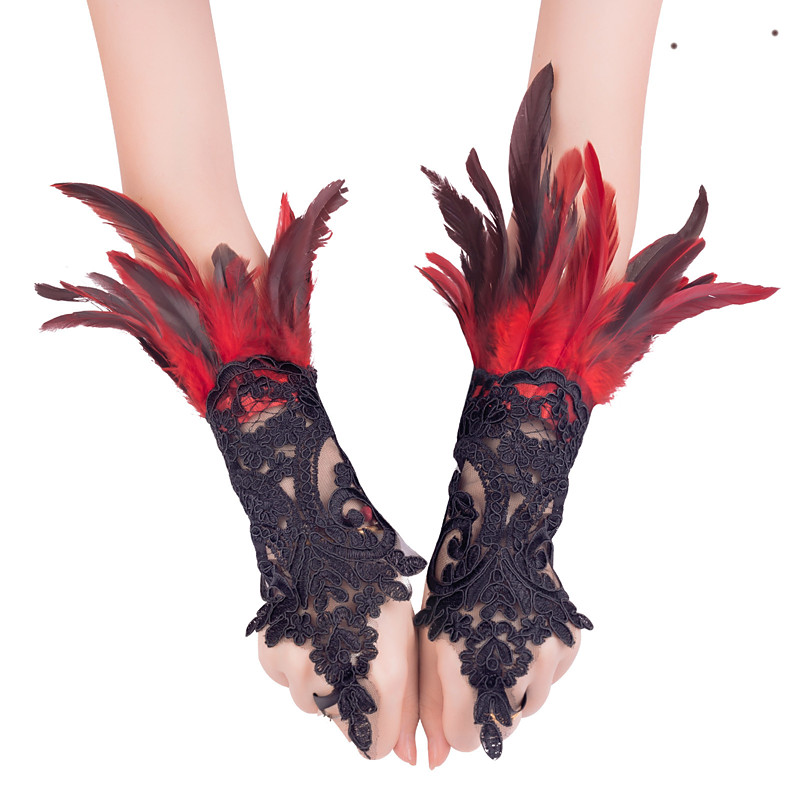 Carnival 2026Rio Carnival Samba Accessories Women's Red Feather Wrist Cuffs with Black Lace Brazil Festival Performance Costume