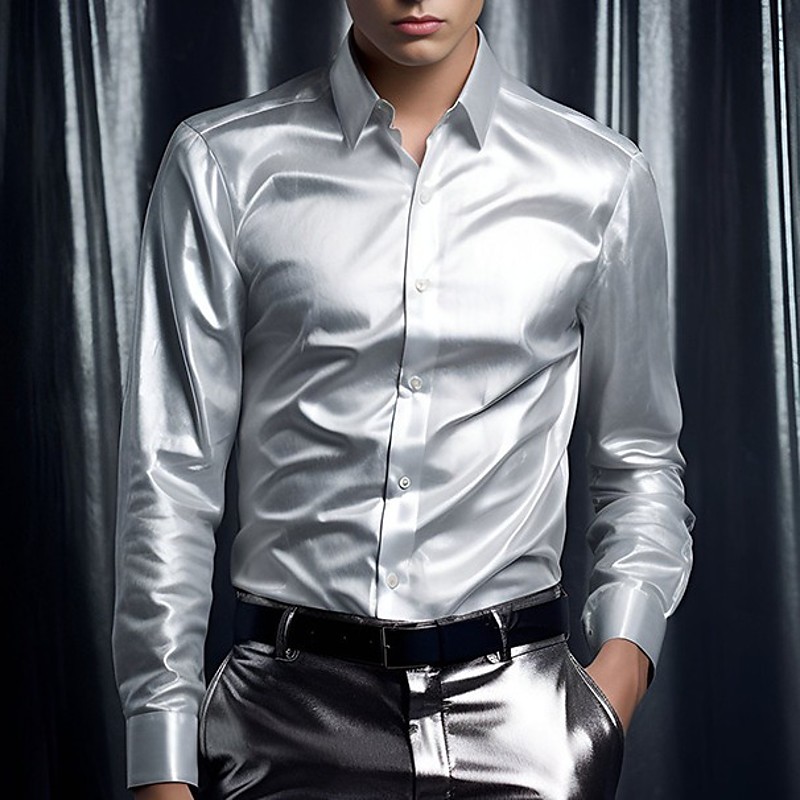 Retro Vintage 1980s Shiny Metallic Shirt Disco Solid Color Turndown Fancy Dress Men's Carnival Costume Carnival Performance Club Pride Parade Adults' Shirt All Seasons