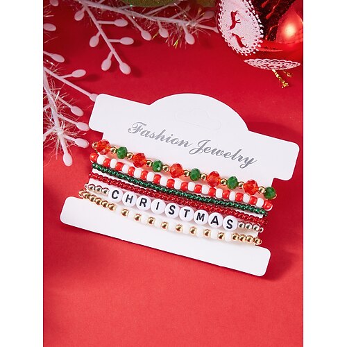 braccialetti natalizi con perline da donna, in lega e acrilico, nei colori festivi rosso, verde e bianco, gioielli natalizi con fiocchi di neve, ciondoli a forma di Babbo Natale e albero di Natale