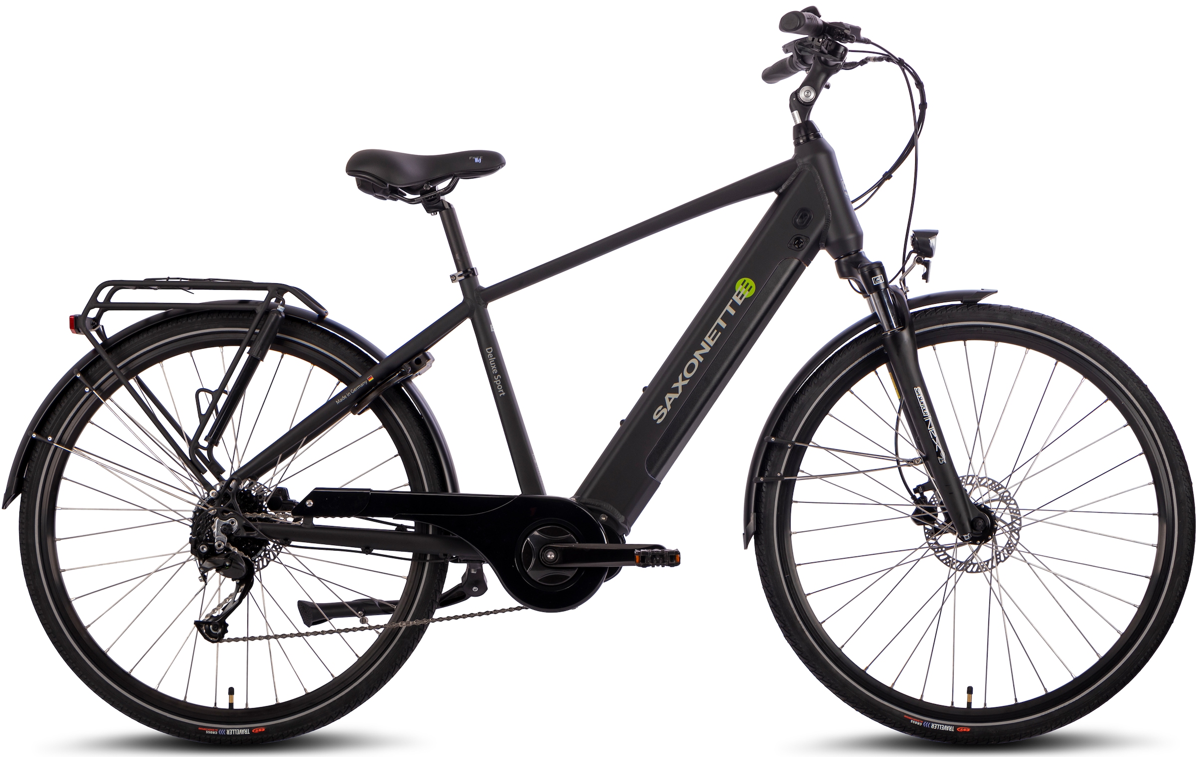 E-Bike SAXONETTE "Deluxe Sport Man" Gr. 48, schwarz (schwarz matt, schwarz), Elektrofahrräder, 48cm, 28 Zoll (71,12cm), Pedelec, Elektrofahrrad für Damen u. Herren