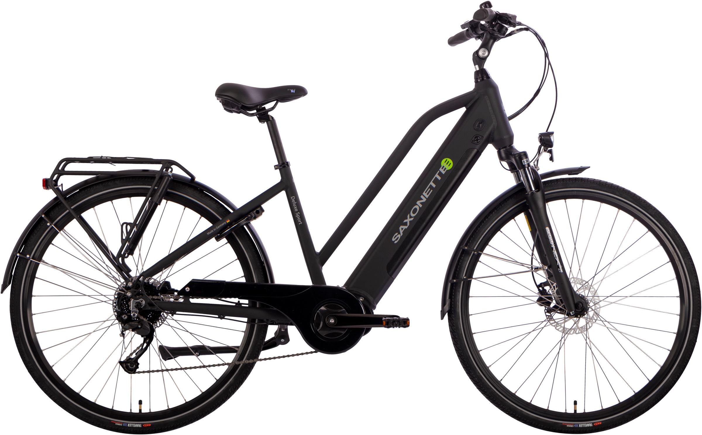 E-Bike SAXONETTE "Deluxe Sport Lady" Gr. 50, schwarz (schwarz matt, schwarz), Elektrofahrräder, 50cm, 28 Zoll (71,12cm), Pedelec, Elektrofahrrad für Damen u. Herren