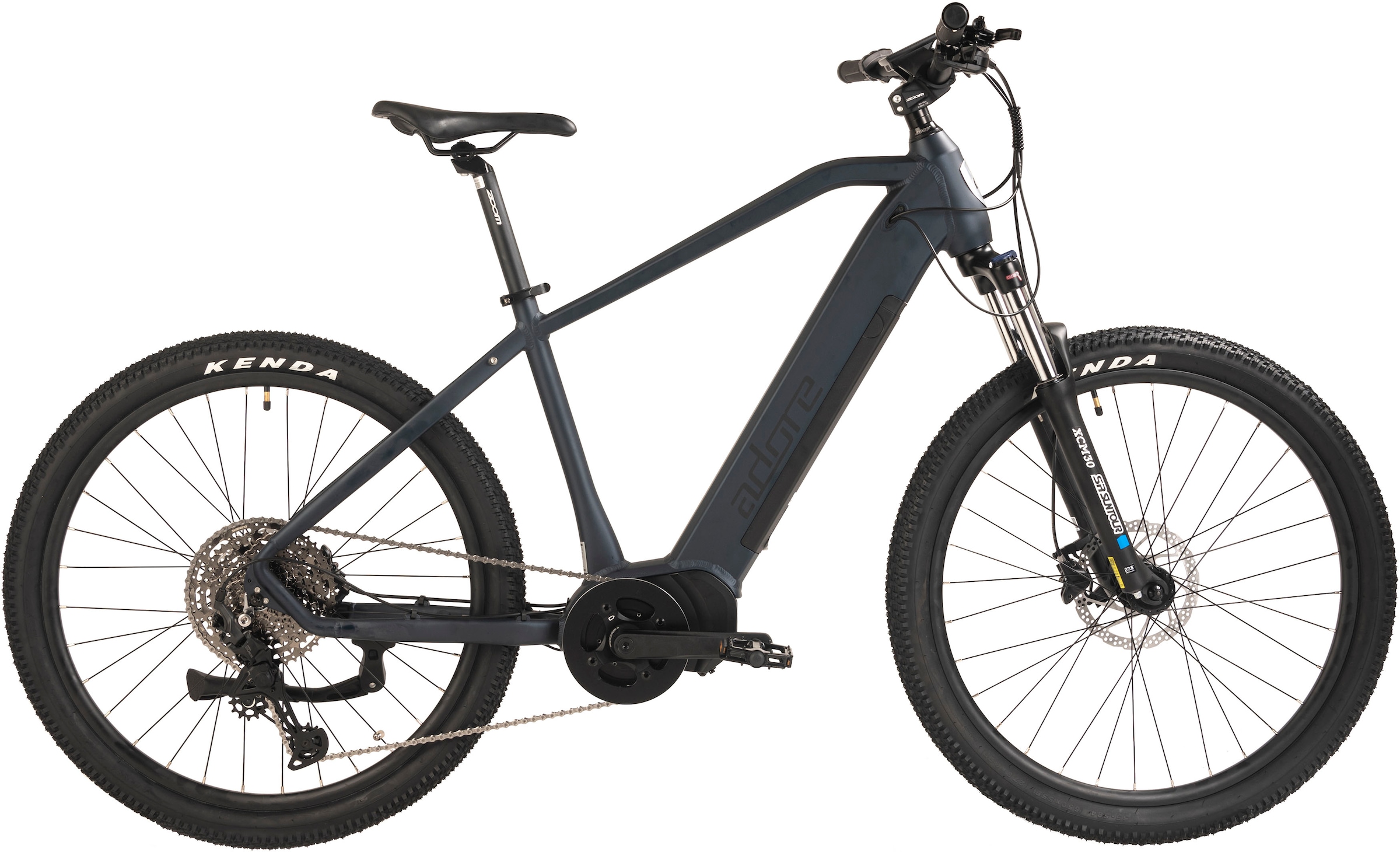 E-Bike ADORE "GX-650" Gr. 48, blau (nachtblau matt, schwarz), Elektrofahrräder, 48cm, 27,5 Zoll (69,85cm), Pedelec, Elektrofahrrad für Damen u. Herren, MTB