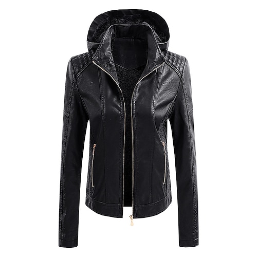 Per donna Giacca in Ecopelle Giacca da Biker Caldo Confortevole Cerniera Tasca Casual Tinta unica Vacanza Streetwear Casuale Abbigliamento quotidiano Corto Con Cappuccio Vestibilità regolare Manica