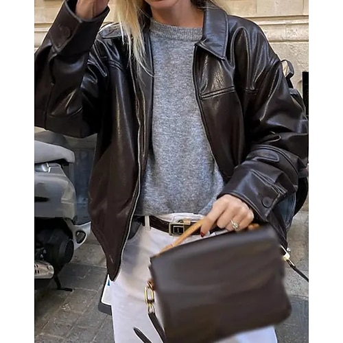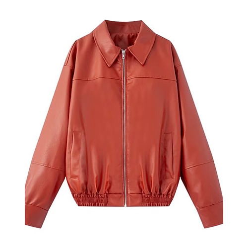 Per donna Giacca in Ecopelle Giacca Casual Confortevole Traspirante Cerniera Tasca Moda Casual Semplice Vacanza Streetwear Casuale Abbigliamento quotidiano Cerniera Corto Collo ripiegato Taglia