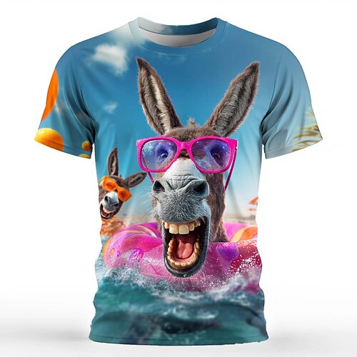 Herren Tiermotiv Esel Lustig T Shirt Kurzarm T-Shirt 3D-Druck Rundhalsausschnitt Hemd Übertrieben Designer Party Ferien Blau Blau 3# Blau 2# Sommer Frühling Bekleidung S M L XL XXL XXXL