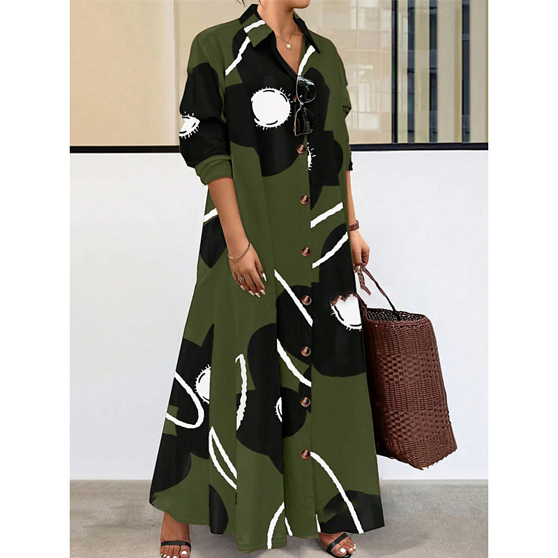 Women's Floral Shirt Collar Maxi Dress Long Sleeve Spring Fall