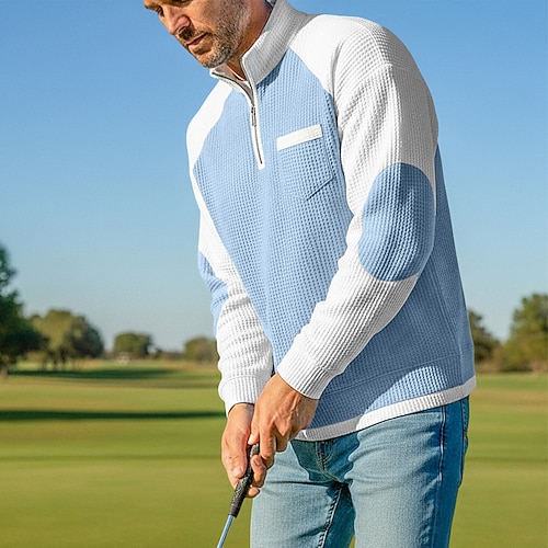 Per uomo Maglietta Polo con zip Maglietta tattica Camicia a Maniche Lunghe Manica Lunga Zip a un quarto Colletto fasciato Primavera Autunno Blocco di colori Quotidiano Casual Stile da Strada Tasca