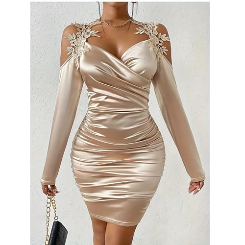 Per donna Mini Abito Tubino Vestito all'americana Abito a spalle scoperte Festa cocktail Abiti semi formali Matrimonio All'aperto Feste Taglia piccola Tinta unica Senza Maniche All'americana Nero