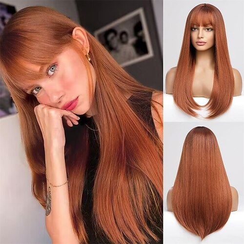 parrucca lunga ondulata con frangia per donne bianche parrucche femminili dall'aspetto naturale con radici scure parrucca in fibra sintetica per uso quotidiano alle feste parrucca riccia lunga fino al