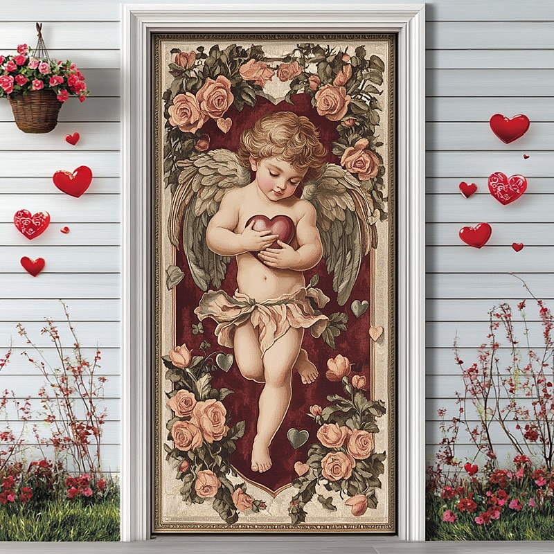 Painting Angels Door Covers Door Tapestry Door Curtain Decoration Backdrop Door Banner for Front Door Farmhouse Holiday Party Decor Supplies