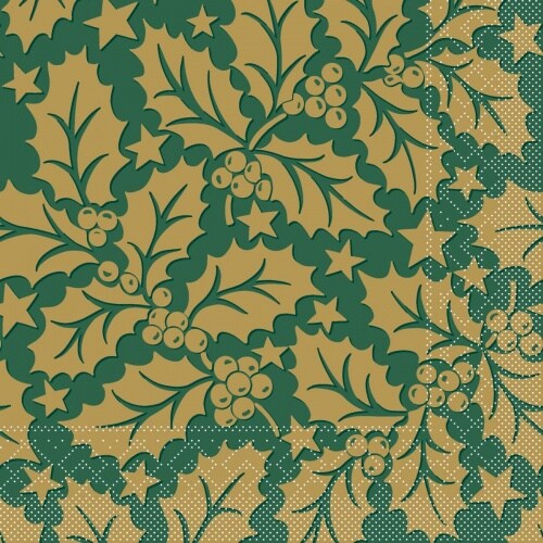 Mank Serviette Tissue Michael in Grün, 33 x 33 cm, 100 Stück - Ilex-Zweige Weihnachten