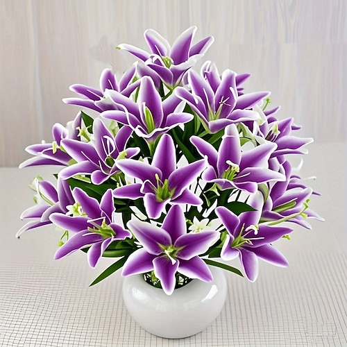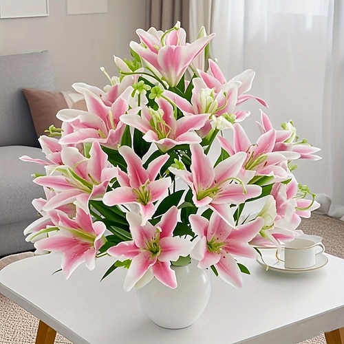 18 fiori di giglio artificiali: eleganti fiori finti, perfetti per matrimoni, feste, Natale, decorazioni del Ringraziamento, soggiorno, camera da letto, stile del tavolo da pranzo e decorazioni per la