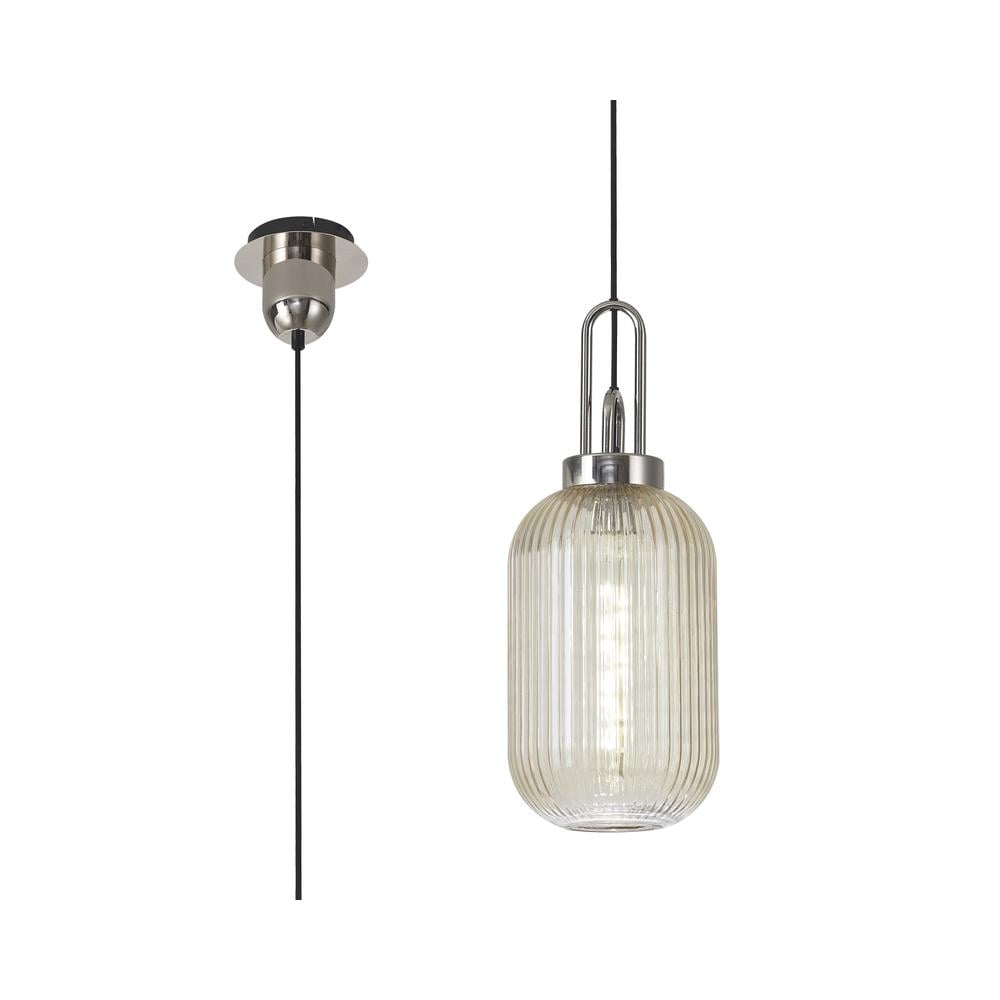 Serena Pendant Light E27 With 33.5cm Prismatic Glass Shade Polished Nickel/Clear Luxuria