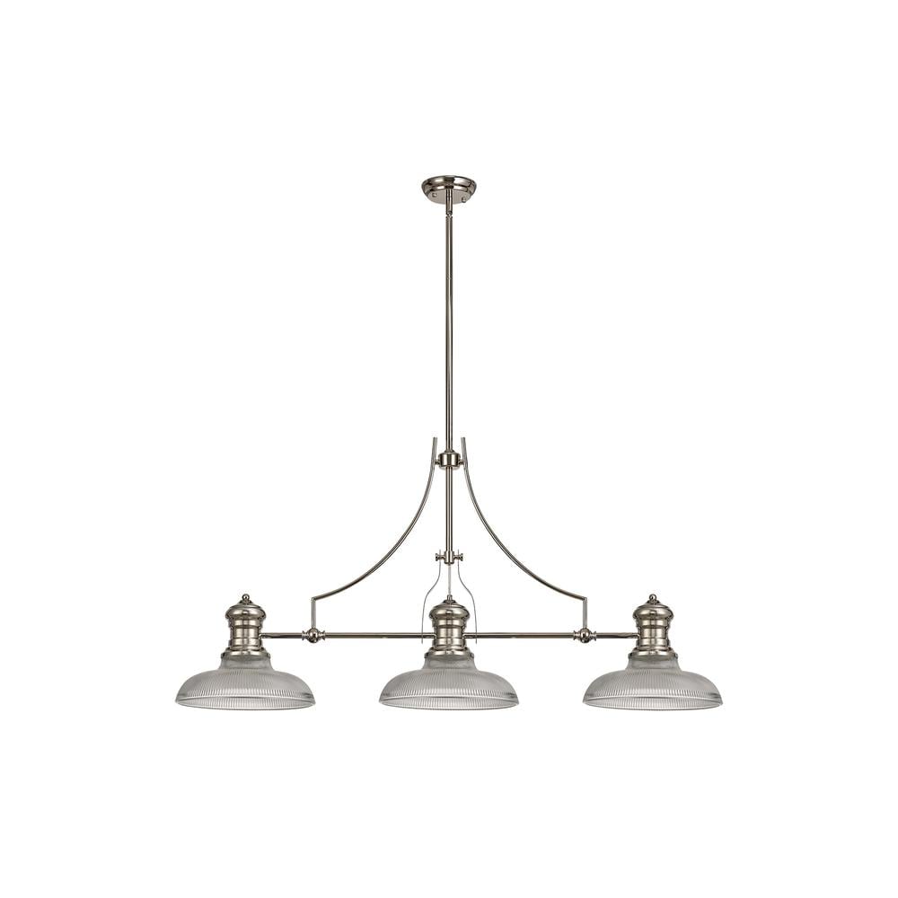 Serena 3 Light Linear Pendant E27 With 30cm Round Glass Shade Polished Nickel Clear Luxuria
