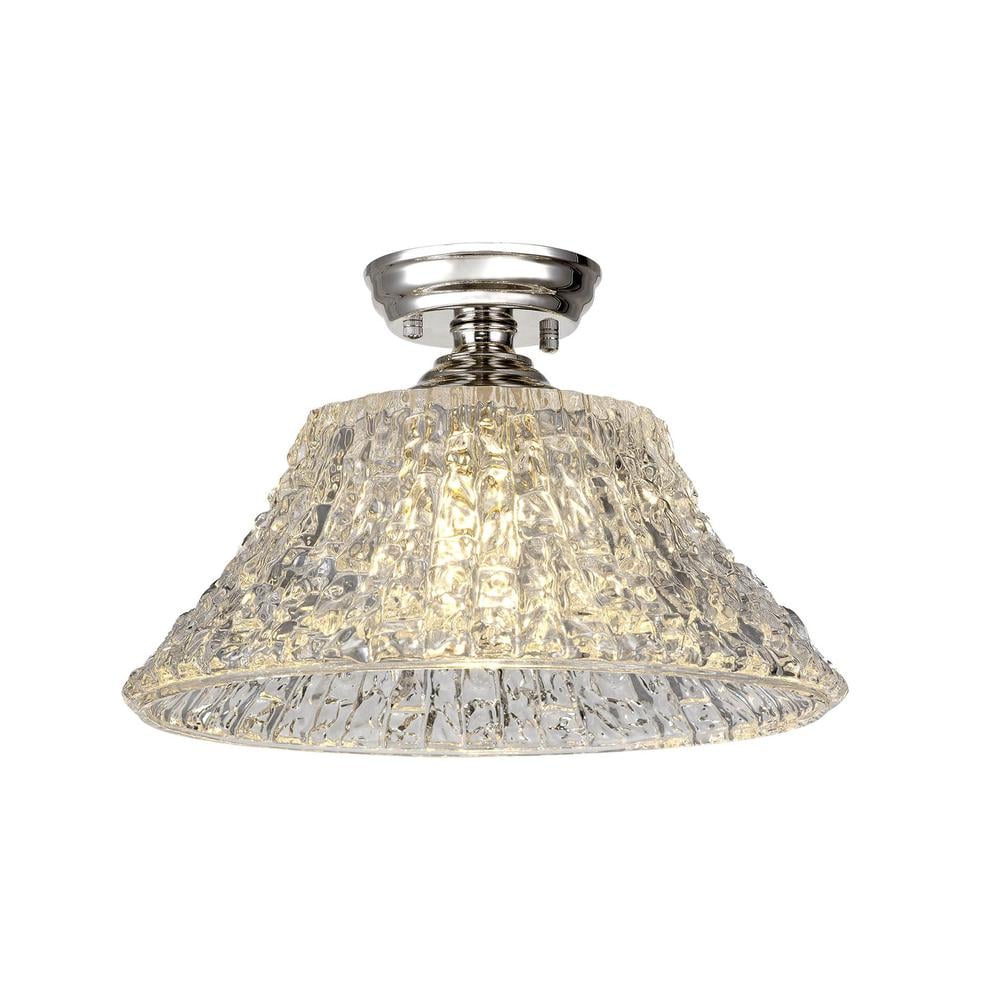 Sirius Flush Ceiling Light 1xE27 With Round 38cm Patterned Glass Shade Polished Nickel/Clear Luxuria