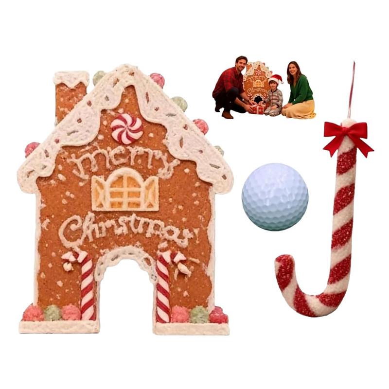 Gingerbread House Golf Kit, Gingerbread Golf Game Set, Christmas Golf Game, Indoor Golf Decor Halloween Ginger Bread House Kit with Candy Cane Club Balls, Portable Family Game for Kids Adults