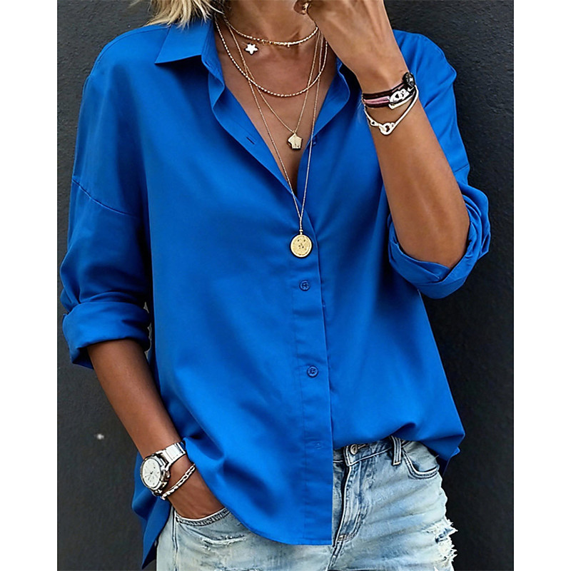 Women's Work Shirt Solid Color Elegant Stylish Modern Long Sleeve Shirt Collar Tops Work Party Evening Wear Daily Black Red Blue Purple Green Fall Winter Spring, Fall, Winter, Summer