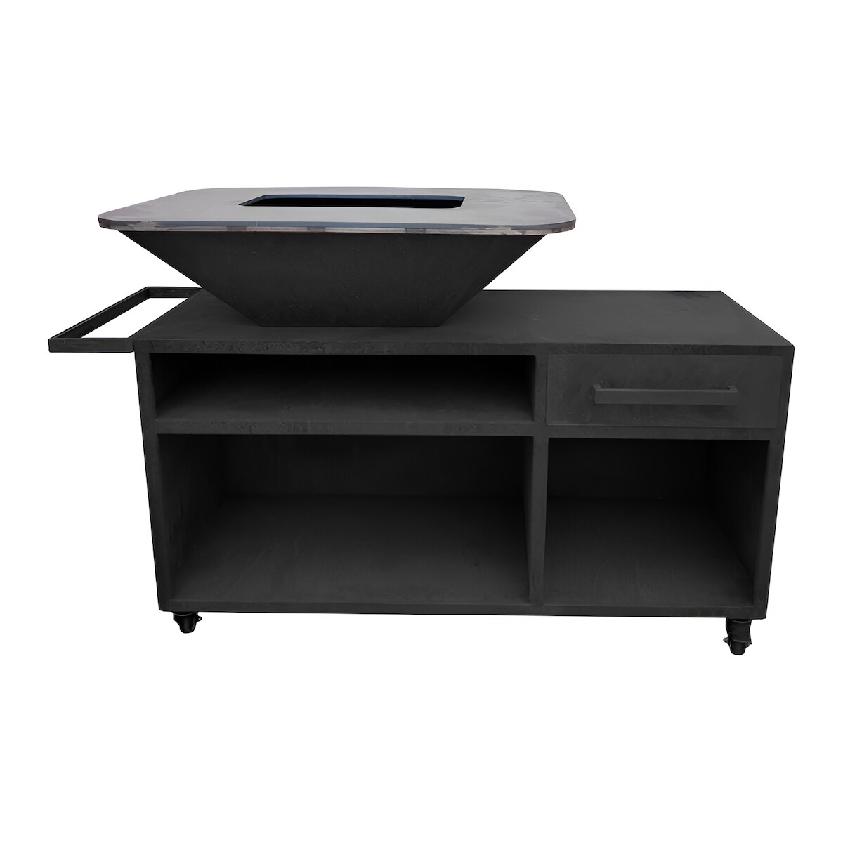 PURLINE Großer Grill mit Schrank aus schwarzem Stahl mit Kochplatte und Grill EFP56RECT B
