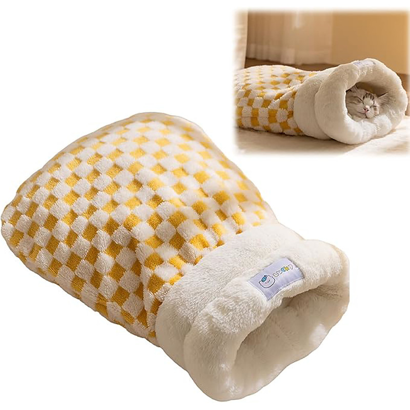 Cat Sleeping Bag Cat Sleeping Bag for Indoor Cats Cozy Winter Soft Plush Self Warm Kittens Indoor Sack 360Wrap Comfortable Pet Snuggle Sack for Cats up to 8kg/17.6lb