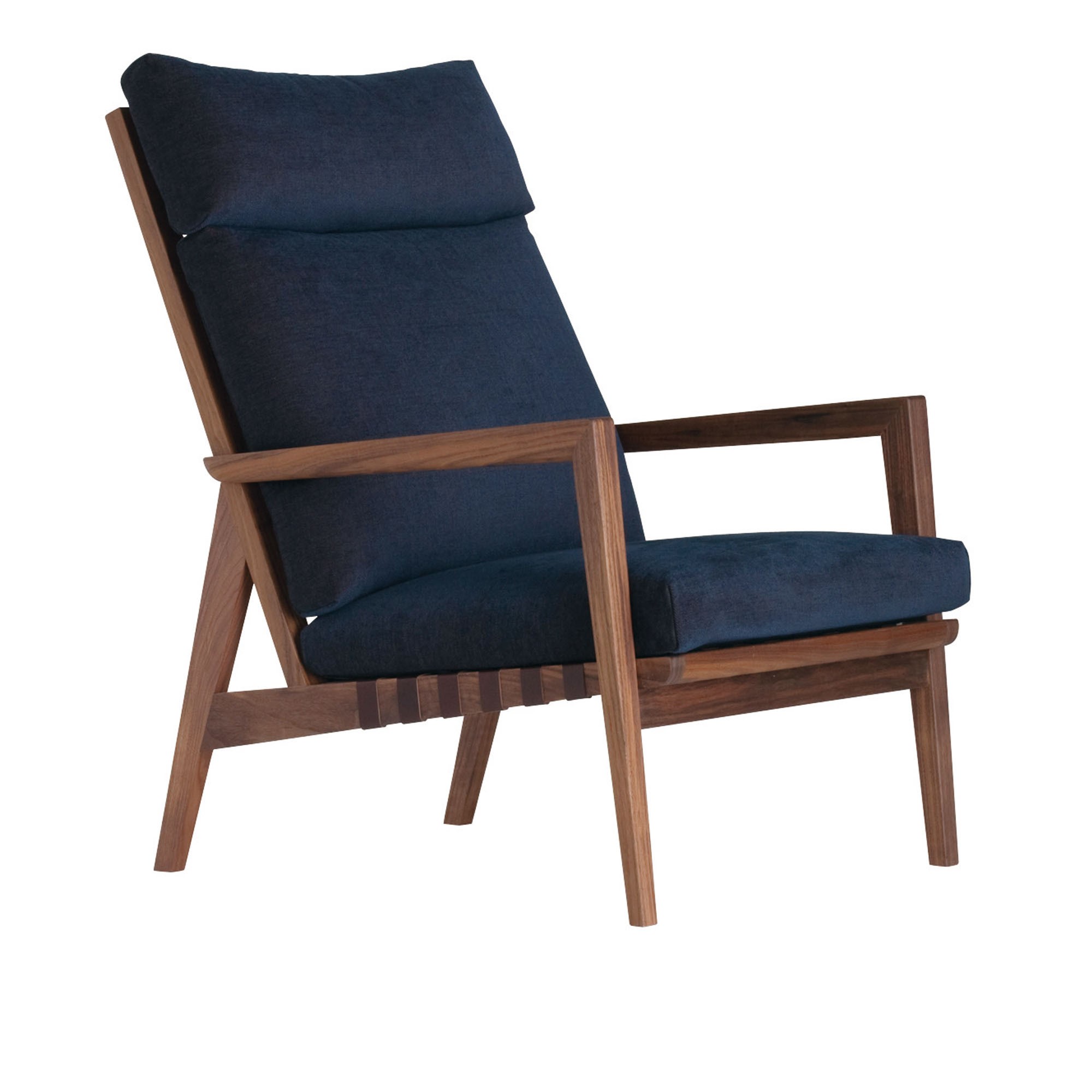 Ritzwell - Blava 1206 High-Back Easy Chair, Walnut Frame, Natural Oil Finish, Black Thick Leather, Fabric Cat. T., 3037 - Fåtöljer - Shinsaku Miyamoto - Beige - Läder/Trä/Textilmaterial