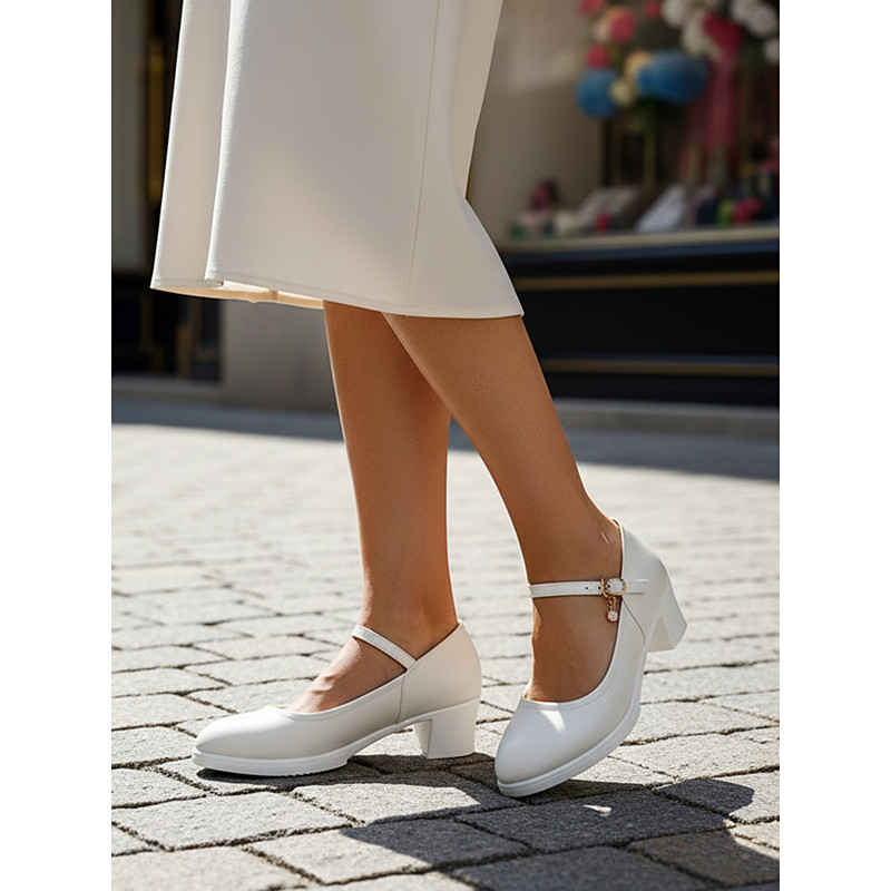 White Pearl Ankle Strap Block Heel Sandals for Women – Elegant Open Toe High Heels for Wedding, Party, Prom