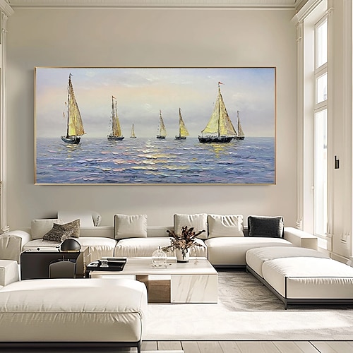 grande dipinto a mano arte da parete barca a vela festa pittura a olio fatta a mano paesaggio marino texture pittura artistica immagine colorata barca arte della parete decorazione della casa