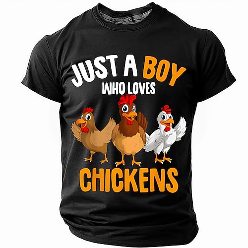 maglietta divertente con pollo, maglietta con la scritta Just a boy who loves chickens, simpatica maglietta con grafica di animali da fattoria, regalo per gli amanti del gallo e della gallina per