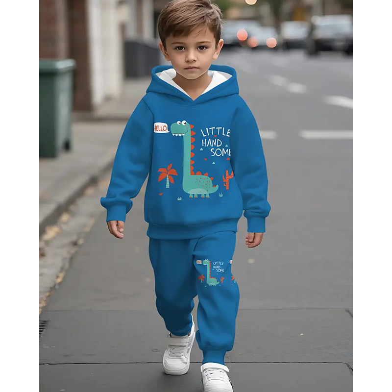 Boys 3D Graphic Dinosaur Hoodie Sweatpants Set Sports Suit Tracksuits Long Sleeve Spring Fall Daily Basic Casual Kids 4-12 Years Hooded Outdoor Vacation Sports Tailored Fit