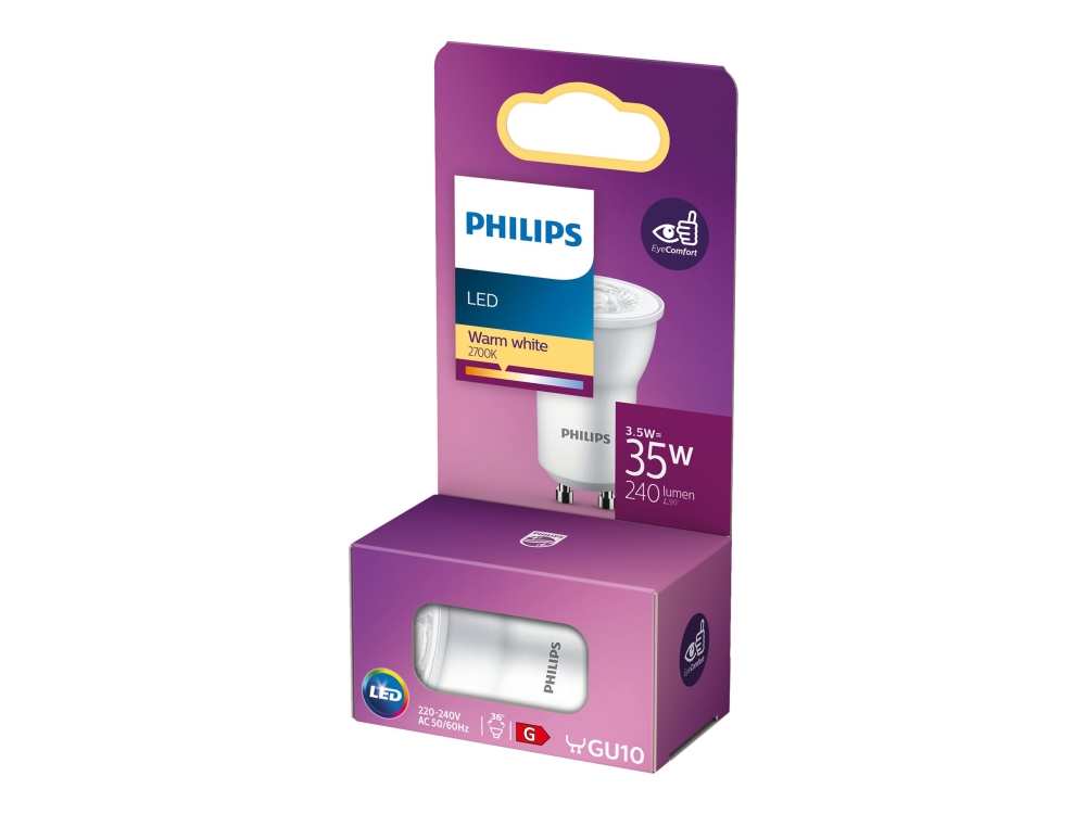 Philips - LED-pære for søkelys - form: MR11 - GU10 - 3.5 W (ekvivalent 35 W) - klasse G - varmt hvitt lys - 2700 K