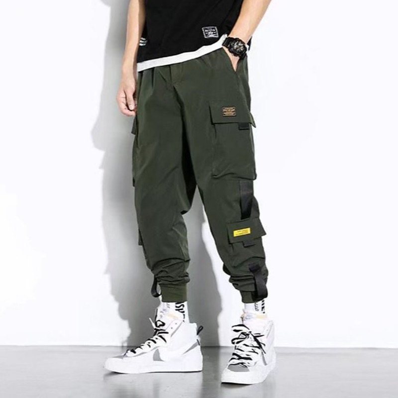 Men's Cargo Pants Cargo Trousers Joggers Trousers Harem Pants Drawstring Elastic Waist Leg Drawstring Plain Full Length Casual Daily Streetwear Hip Hop Black Army Green Micro-elastic