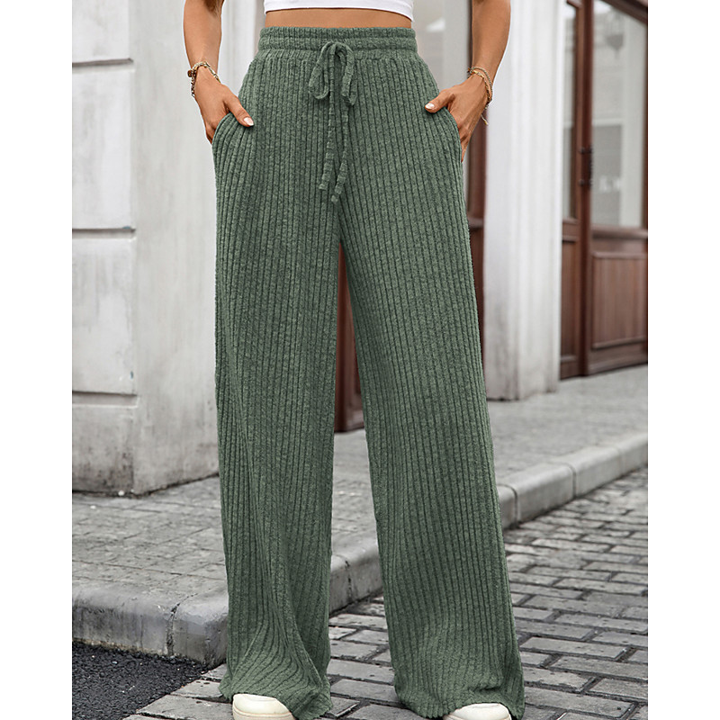 Women's Wide Leg Slacks Streetwear Casual Full Length Natural Plain Pocket Elastic Drawstring Design Comfy Street Holiday claret Black Army Green Light Brown Fall Regular Fit