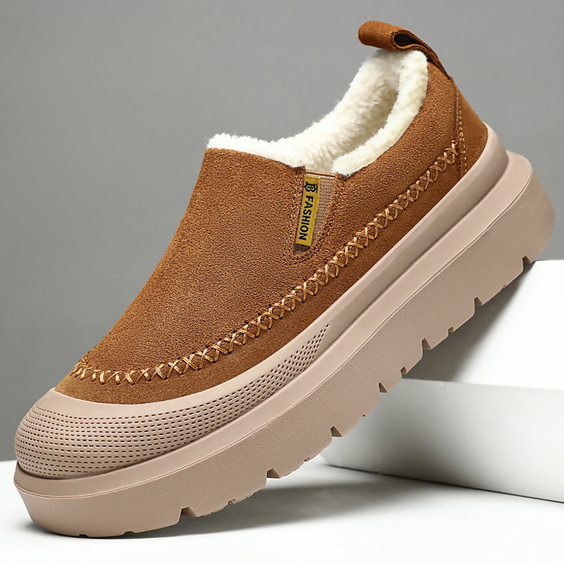 Men's Slip-on Brown Winter Shoes – Soft Fleece Lining, Trendy and Comfortable, Ideal for Daily Wear and Cold Weather Activities