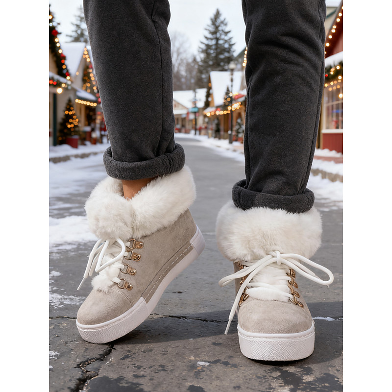 Women's Casual Winter Sneakers with Faux Fur Lining - Fashionable High-Top Shoes for Cold Weather and Everyday Wear