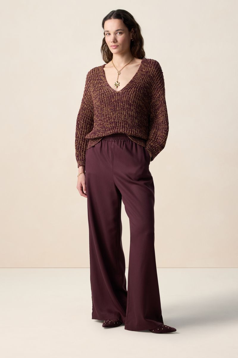 Lurex-Pullover Mit V-Ausschnitt - Dunkelrot