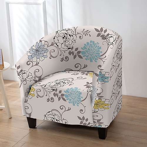 Copripoltrona club con stampa a righe di piante e motivi geometrici, in poliestere, per soggiorno, camera da letto e ufficio domestico