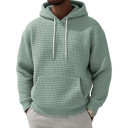 Per uomo Felpa con cappuccio Felpa con cappuccio a nido d'ape Maglione Nero Bianco Verde chiaro Rosa Blu marino Con Cappuccio Semplice Tasca a marsupio Testurizzato Casuale Quotidiano Sport Outdoor
