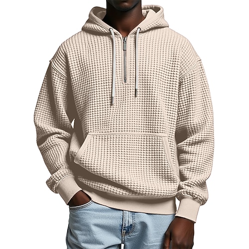 Per uomo Felpa con cappuccio Felpa con cappuccio a nido d'ape Maglione Aalbicocca Rosso bordeaux Nero Bianco Blu marino Con Cappuccio Semplice Tasca a marsupio Testurizzato Casuale Quotidiano Sport